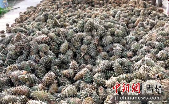 在這豐收的季節(jié)里,除了金黃的田野,山林間也迎來了另一番收獲的景象——打松塔。走進(jìn)延吉市三道灣鎮(zhèn)平崗村李永軍的院子,院子里鋪滿了剛打下來的松塔,空氣中彌漫著淡淡的松香。綠油油、飽滿壯實(shí)的松塔像一顆顆沉甸甸的小寶石,閃爍著秋日的光澤,也映照出一年辛勤勞作的成果。