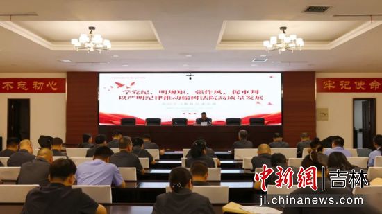 中新網(wǎng)吉林新聞7月8日電 近日,榆樹(shù)市人民法院黨組書(shū)記、院長(zhǎng)盧玉紅以“學(xué)黨紀(jì)明規(guī)矩強(qiáng)作風(fēng)促審判 以嚴(yán)明紀(jì)律推動(dòng)榆樹(shù)法院高質(zhì)量發(fā)展”為題,為該院全體干警講授黨紀(jì)學(xué)習(xí)教育紀(jì)律黨課。