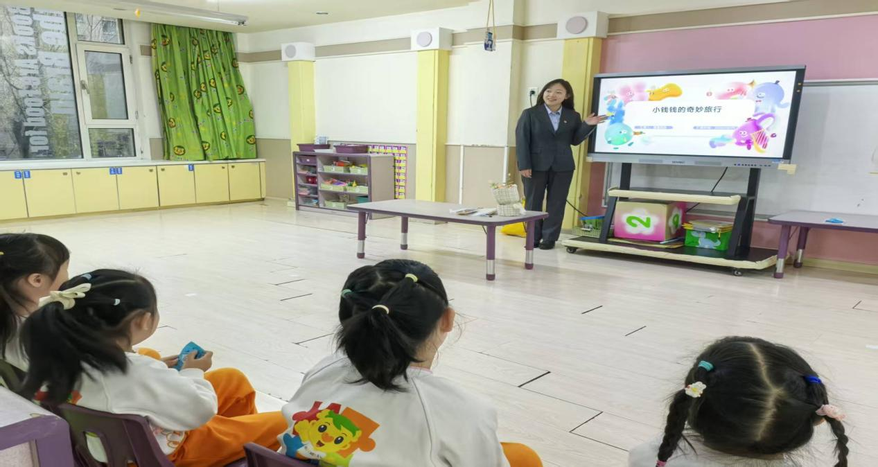考慮到幼兒注意力特點(diǎn),主講人王琳還設(shè)計(jì)了“錢幣小法官”游戲:她展示不同場(chǎng)景卡片,比如“小朋友幫媽媽保管手機(jī),不隨便點(diǎn)開付款鏈接”“陌生人要借手機(jī)轉(zhuǎn)賬,小朋友說(shuō)‘要問(wèn)爸爸媽媽’”,讓孩子們判斷“做得對(duì)不對(duì)”。孩子們積極舉手,有的站起來(lái)模仿卡片里的小朋友說(shuō)話,有的拉著同伴一起討論,原本抽象的安全規(guī)則,變成了能判斷、能模仿的具體行為,現(xiàn)場(chǎng)笑聲與回答聲此起彼伏,連老師都忍不住加入互動(dòng)。