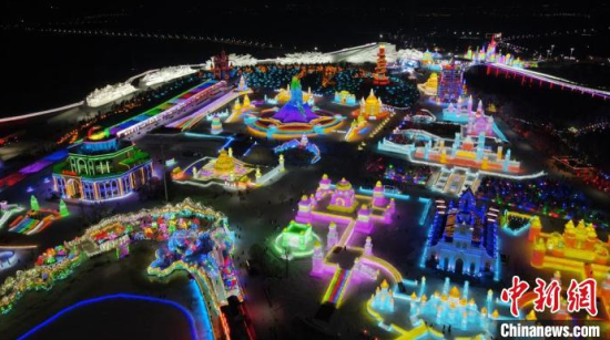 12月17日,第28屆長春冰雪節(jié)開幕,圖為長春冰雪新天地全景。(無人機照片)