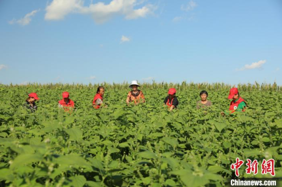 村民正在采摘紫蘇葉。(資料圖) 永吉縣委宣傳部供圖
