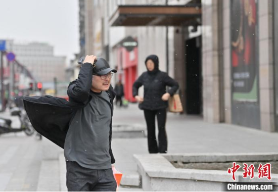 3月12日,長(zhǎng)春市迎來(lái)大風(fēng)天氣,市民捂住帽子在風(fēng)中行走。 張瑤 攝