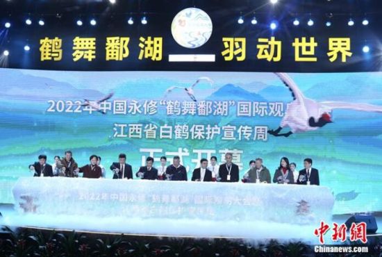 當日,以“鶴舞鄱湖 羽動世界”為主題的2022年中國永修“鶴舞鄱湖”國際觀鳥大會在“中國候鳥小鎮(zhèn)”江西永修縣吳城鎮(zhèn)開幕,活動旨在以候鳥為媒、以鄱湖為景,開啟觀鳥親鳥、愛鳥護鳥的廣闊天地,架起交流溝通、開放合作的友誼橋梁。
