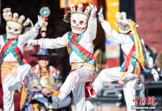 中新社拉薩2月19日電 (記者 趙朗)19日是藏歷十二月二十九日,西藏楚布寺舉行“羌姆”表演迎藏歷新年。這一天的重要程度相當于農歷的除夕。