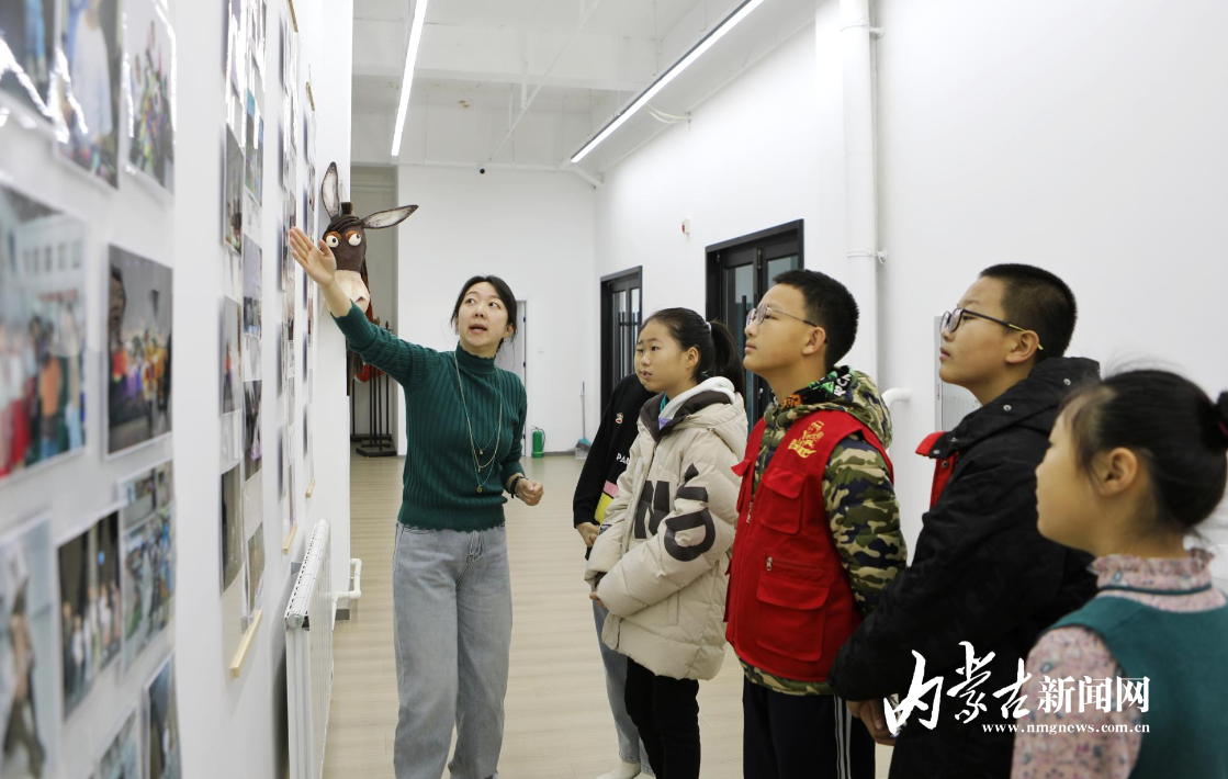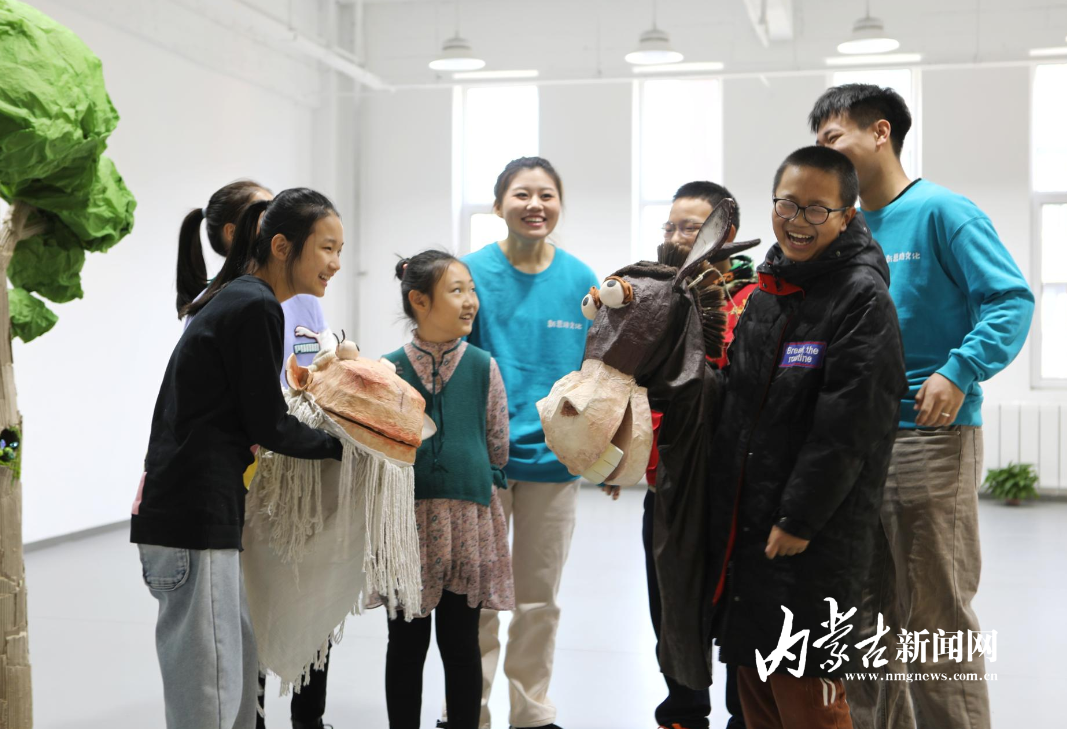 “這是排練室,這些道具是我們和小朋友一起動(dòng)手制作的……”內(nèi)蒙古新思路文化藝術(shù)培訓(xùn)中心作為兒童音樂劇《十二生肖“斗天狗”》的創(chuàng)排方,工作人員胡亞敏帶領(lǐng)小記者們參觀中心的文化墻和排練廳,瀏覽歷年來優(yōu)秀劇目和演出的精彩瞬間,讓大家感受濃厚的藝術(shù)氛圍,近距離觸摸觀賞演出道具,對兒童劇有更直觀認(rèn)識。