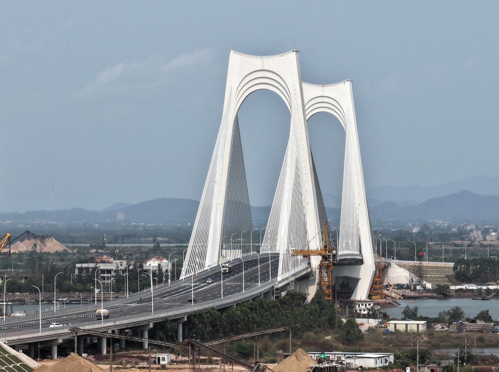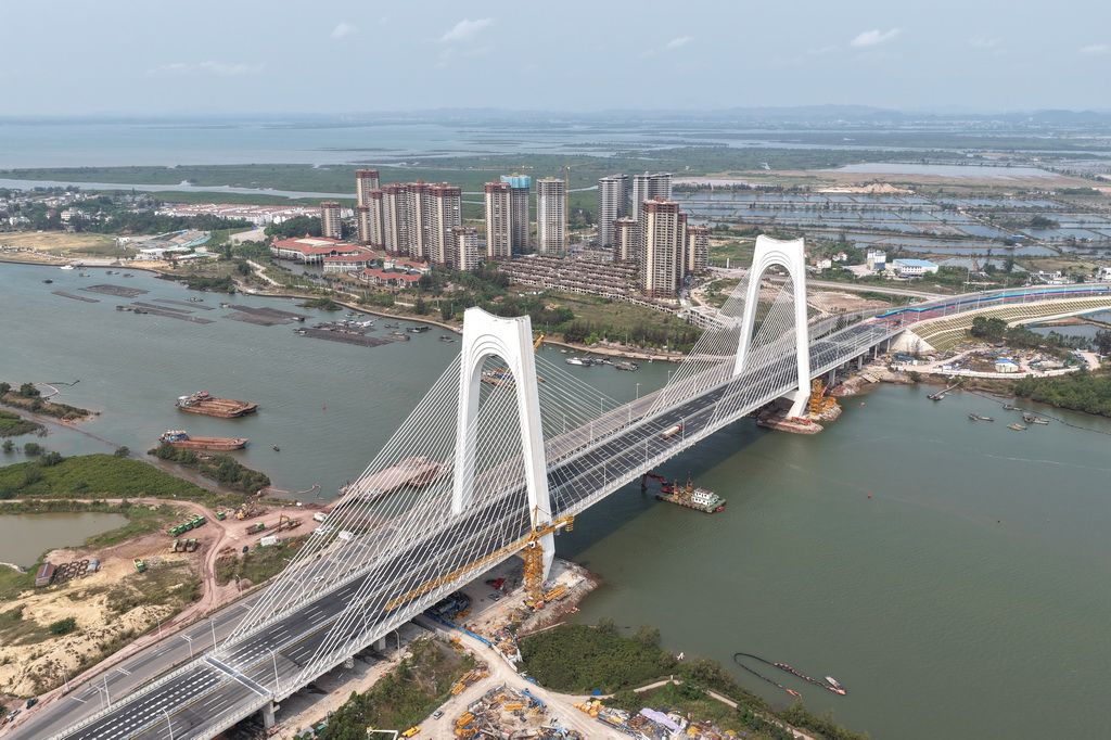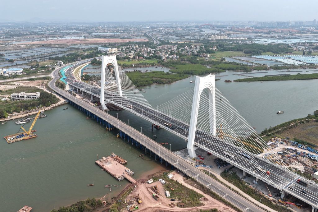 3月31日,地處欽江入??诘钠疥戇\(yùn)河沙井欽江大橋建成通車。至此,平陸運(yùn)河規(guī)劃的27座跨線橋梁中,已有25座橋梁建成通車,全線橋梁工程即將收官。新華社記者 周華 攝