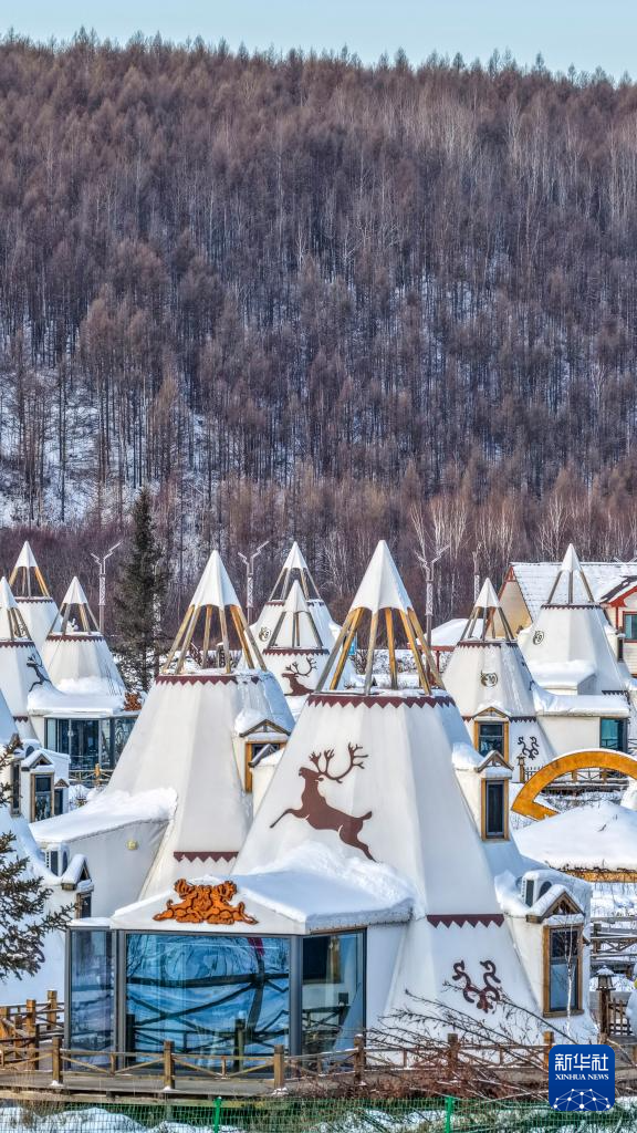 這是1月15日在根河市敖魯古雅鄂溫克民族鄉(xiāng)拍攝的鄂溫克族傳統(tǒng)民居撮羅子(無人機(jī)照片)。