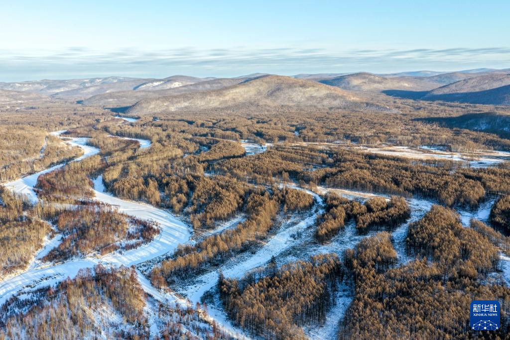 這是1月15日在根河市拍攝的冰封的根河(無人機(jī)照片)。
