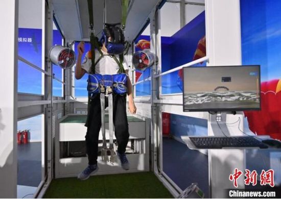 參觀者在進行跳傘體驗。張瑤 攝