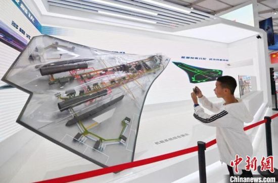 參觀者在為飛機模型拍照。張瑤 攝