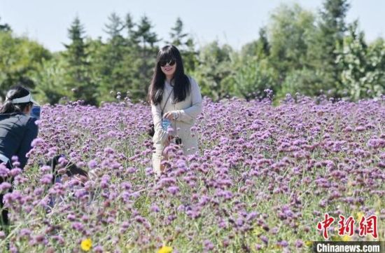 9月12日,在長春北湖花海,姹紫嫣紅的花朵在綠樹藍天的映襯下構(gòu)成了一幅美麗的秋色畫卷,吸引眾多游客前來觀賞。
