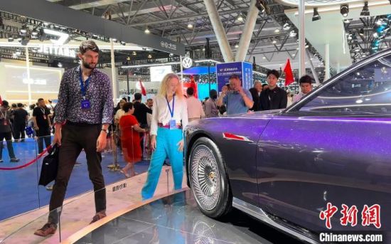 7月16日,外商在第21屆長春國際汽車博覽會(huì)上參觀中國紅旗汽車。郭佳 攝